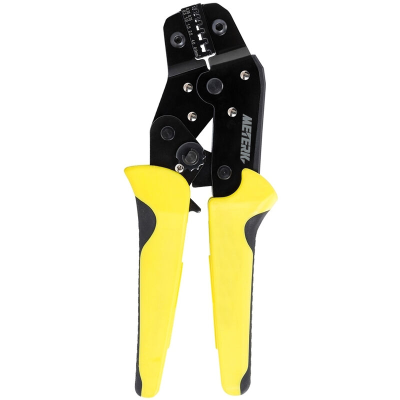 Il piegatore filo dispone convenienza, l'efficienza e l'innocuità per le anime del cavo. E 'facile da usare, basta afferrare la maniglia e manipolare una volta per premere con successo stretto il filo e morsettiere. Caratteristiche: Registrazione esatta prima della consegna franco fabbrica. A causa della grande maniglia che afferra la posizione, la luce e la struttura compatta e gestire la progettazione assicurare effetto di piegatura perfetto. Crimp terminali di fascia cavo 24-10 AWG (0.25-6.0mm²). (JX-1601-1606) Crimp terminali isolati / nidi codice di colore da 24 a 14 AWG (0.25-2.5mm²). (JX-1601-1601) Con vite di regolazione, è possibile regolare la forza di aggraffatura. I componenti del cricco attrezzi di piegatura sono realizzate in acciaio speciale. Progettato secondo l'ingegneria dei fattori umani, si può risparmiare l'energia 50% quando unisce. Specifiche tecniche: Marca: Meterk Materiale: Acciaio-alto tenore di carbonio + lega Colore: giallo + nero Modello: JX-1601-06
