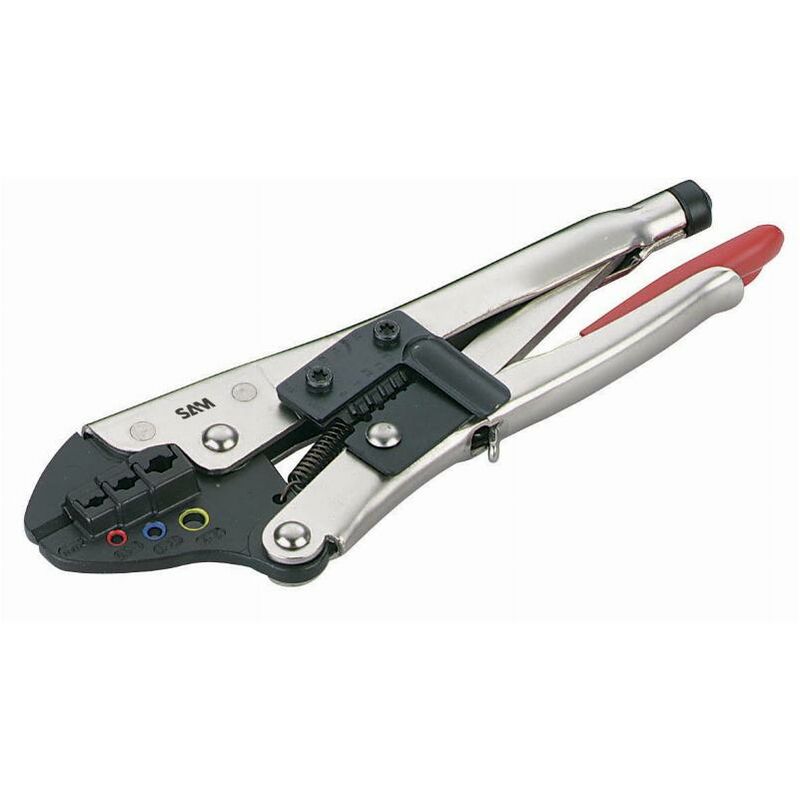 Dettagli: Per crimpare terminali preisolati. Le sue ganasce consentono una pressione di crimpatura controllata. Taglia e spela cinque sezioni di cavo. Capacità da 0,5 a 6 mm². Lunghezza: 215 mm. Caratteristiche: Peso (g): 550