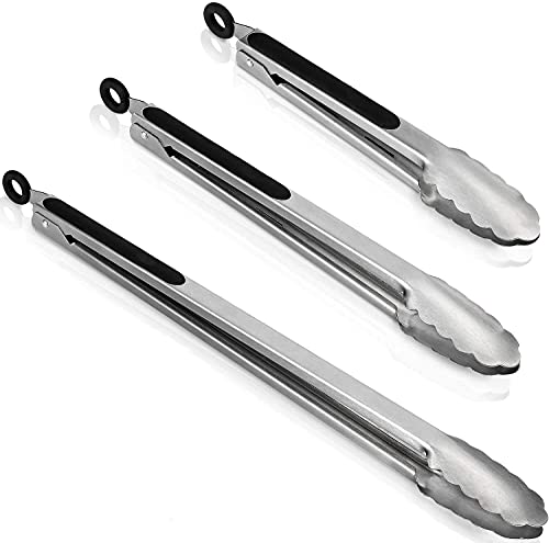 ❤ Pinze Premium di valore superiore Set di 3: incluse pinze da cucina da 12 pollici, 9 pollici e 7 pollici, perfette per uso interno o esterno, soddisfano le tue esigenze di base nella cena quotidiana o nella festa domestica per bloccare bistecche spesse, pesce, insalate, anche in grado essere utilizzato per barbecue all'aperto.
