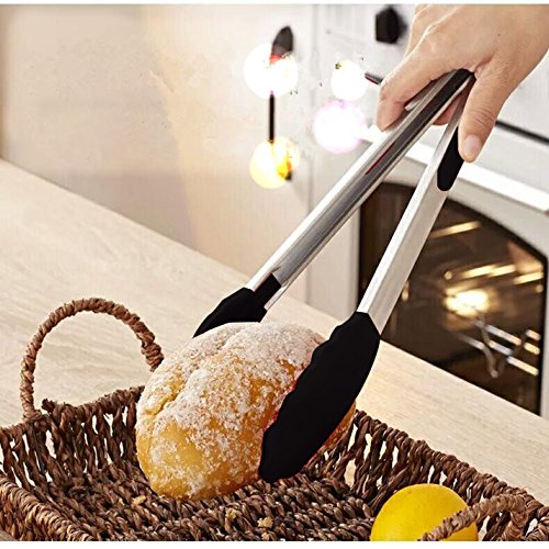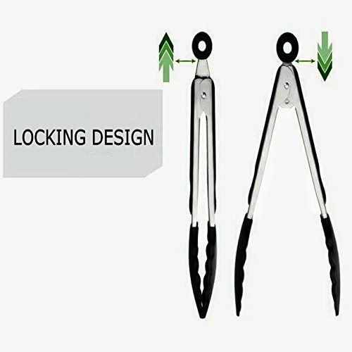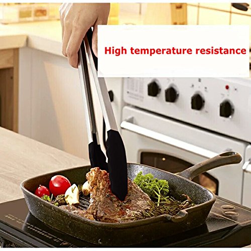 Pinze da Cucina,Pinze per Barbecue Multiuso 9"& 12" Pinze per Alimenti Silicone Antiscivolo Resistente al Calore in Acciaio Inox con Clip di Bloccaggio