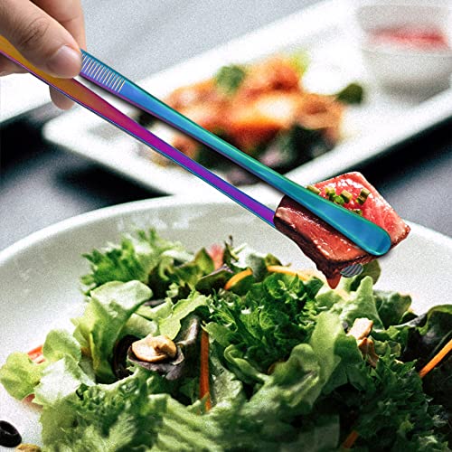 Pinze Cucina Professionale.2 Pezzi Pinzette Multifunzione In Acciaio Inox da 30 Cm.Pinzette Lunghe Dritte con Manici Seghettati per Barbecue.Strumento da Cucina.Morsetto per Bistecca/Colore Arcobaleno