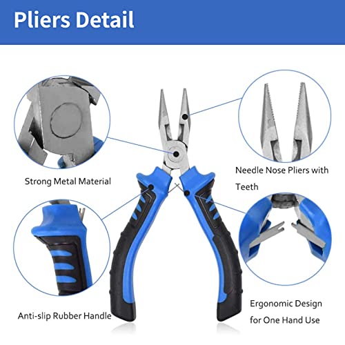 ♣ Pinze per gioielli da 8 pezzi -- 1 pinza a becchi rotondi da 5", 1 pinza a becchi lunghi da 6", 1 pinza a becchi piegati da 5", 1 pinza per taglio diagonale da 4,7", 1 pinza per tagliare le estremità, 1 pinza a becchi piatti da 4,9", 1 pinza per tronchesi da 4,7" Pinza ad ago da 4,9".