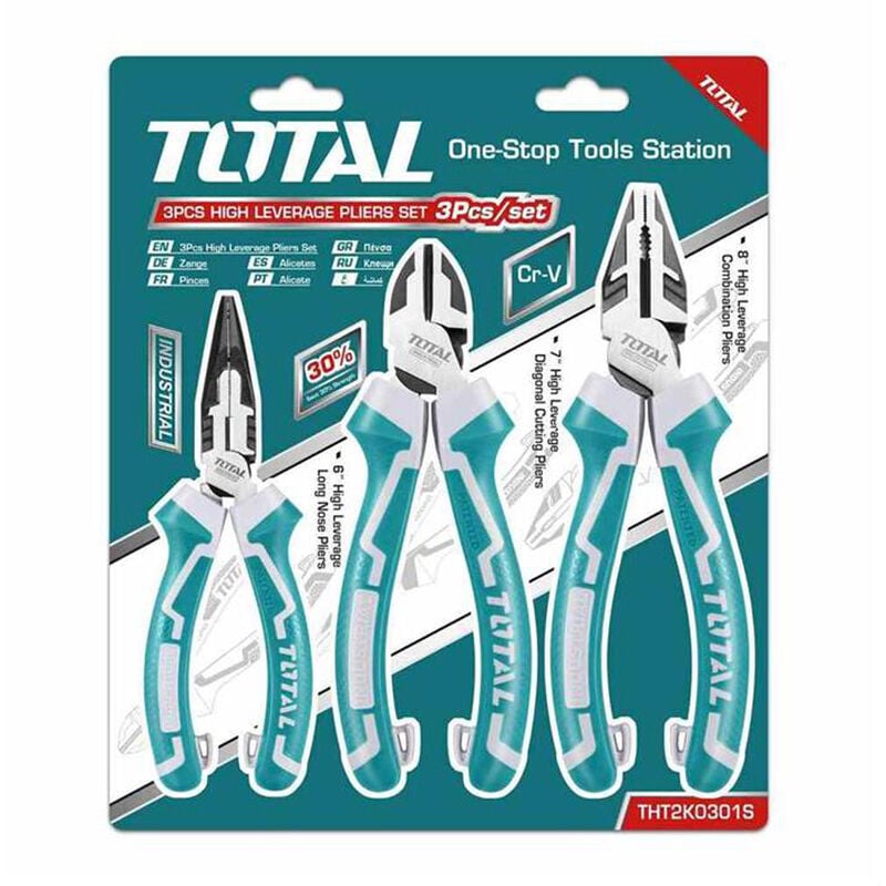 Set Pinze da 3 Pezzi ad Alta Leva TOTAL 1 Pinza Combinata1 Pinza a becco lungo1 TroncheseMateriale: Cr-V Impugnatura in TPR 30% di forza in più Prodotto di qualità LA FATTURA VIENE EMESSA PER IMPORTI SUPERIORI A € 20 E VA RICHIESTA AL MOMENTO DELL'ACQUISTO
