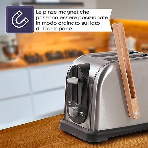 Pinze di Legno da Cucina, Clip per Toast con Magnete Integrato, Ideali per Grigliare, friggere e per Cucinare insalate, pasticcini, Pane e delizie Dolci, pinze per Toast (Confezione da 2)