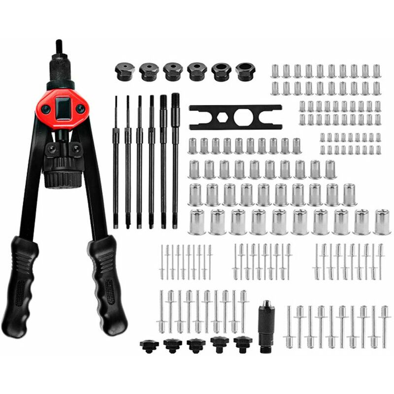 Alta efficienza e risparmio energetico - Il braccio in acciaio al carbonio ispessito e le maniglie ergonomiche possono risparmiare il 40% di sforzo. L'impugnatura in gomma morbida consente un facile funzionamento del rivetto. 【Facile applicazione】 Sostituisce facilmente l'asta del rivetto. Basta inserire l'asta del rivetto nelle pinze per rivetti. Dopo aver installato un dado per rivetto, un semplice giro della manopola rotante farà girare facilmente il dado per rivetto filettato. 【Accessori multipli】7 set di mandrini/punte metrici intercambiabili: M3, M4, M5, M6, M8, M10, M12. Attaccato alla scatola. Il mandrino M8 è già sull'utensile, quindi la scatola di plastica è vuota. Dadi per rivetti da 100 pezzi come segue: M3-20 pezzi, M4-20 pezzi, M5-20 pezzi, M6-10 pezzi, M8- 10 pezzi, M10-10 pezzi, M12-10 pezzi 【Ampie applicazioni】 Fornisce una soluzione di fissaggio personalizzabile per ampie applicazioni di rivettatura: pannelli della carrozzeria, accessori per biciclette, mobili e