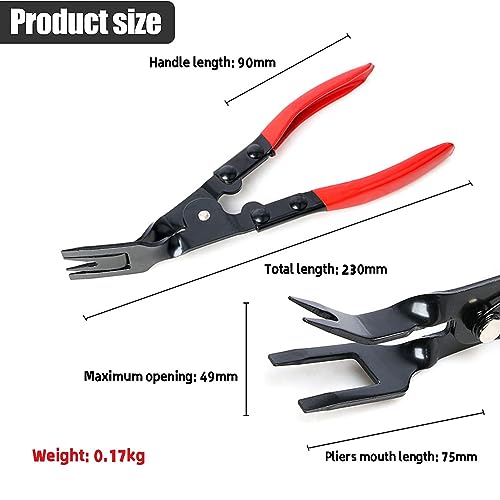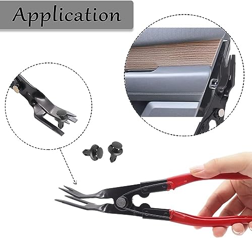 【Ampie applicazioni】Le pinze non sono adatte solo per i lavori di rifinitura interna ed esterna dell'auto, ma possono anche essere utilizzate come estrattori di pneumatici per biciclette e puntine da disegno. Questo le rende ideali per riparazioni di interni di auto, finiture di finestre, clip di pannelli di porte, modanature, tappezzeria di porte e molto altro ancora.
