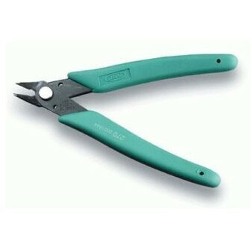 Pinze JBC Tagliare cavi laterali o fili morbidi fino a 0,8 mm 8001844 270 JBC Pinze da taglio a forbice, facili da tagliare ma anche molto morbide, destinate ai lavori di precisione nel campo dell'elettronica e dell'elettrotecnica. Composizione di acciaio con una durezza selettiva nei bordi di taglio che fornisce un'elasticità di lavoro, mango ergonomico rivestito con schiuma vinilica antiscivolo piacevole al tatto e progettato per una presa più confortevole. Include la molla di ritorno.vida Utensile lungo con un tocco e un comfort di per un taglio più facile Peso 46 grammi Lunghezza: 126mm