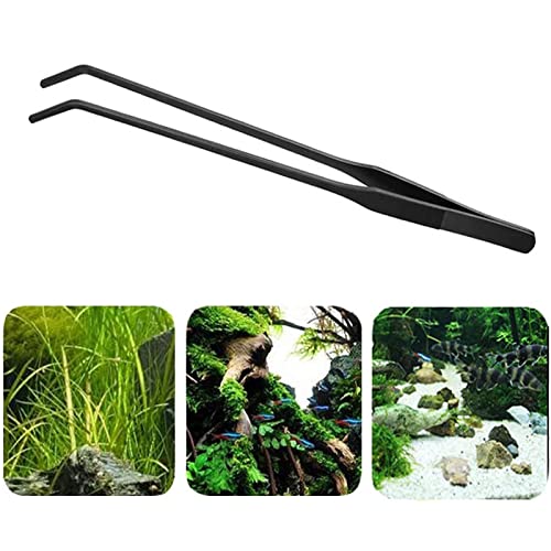 Pinzetta per mangime per acquario, 38 cm, curva, in acciaio inox, con rivestimento anti-carbonio, anti-ruggine, lunga pinzetta per mangime per piante, lucertole, ragni di serpente (BC)