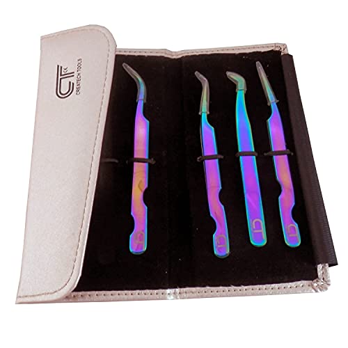 CT - Pinzette per ciglia, per estensioni, dritte, curve, individuali, volumi russi, isolanti, in acciaio inox, arcobaleno, set da 4 pezzi