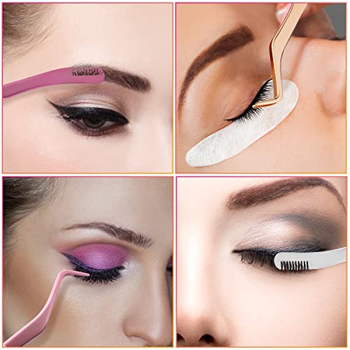 Set di 3 Pinzette per Ciglia, Pinzette per Extension Ciglia 2 in 1 in Acciaio Inossidabile Aggiornate con Applicatore per Ciglia a Pettine per Ciglia Finte (Oro Rosa, Argento, Rosa)