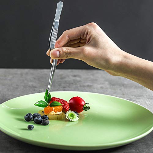 Set di 2 pinzette da cucina e cucina in acciaio inox con punte seghettate di precisione per cucinare cibo design, decorazione, decorazione di torte