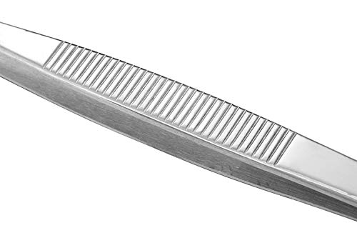 Pinzette dritte in acciaio inox lunghe 20 cm con punte seghettate rotonde per hobby fai da te, pinzette da cucina