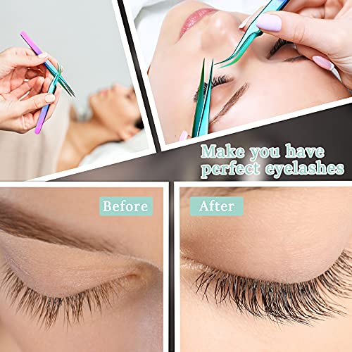 6 Pinzette per Estensione di Ciglia Pinzette a Punta Dritta in Acciaio Inox Pinzette a Punta Curva per Ciglia a Volume Individuale Pinzette Isolanti Strumenti per Ciglia Finte (Arcobaleno)