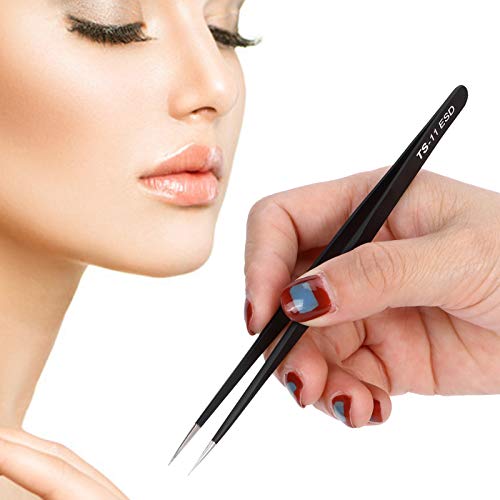 Pinzette per extension ciglia, piegaciglia Accessori per extension ciglia Pinzette antistatiche per ciglia Pinzette precise in acciaio inossidabile, per trapianto di ciglia(TS-11-Dritto)