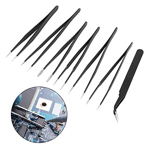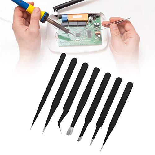 Set di pinzette da 7 pezzi, strumento elettronico di precisione antistatica Pinzette in carbonio conduttivo in acciaio inossidabile nero per modellismo fai-da-te Pin per circuiti integrati riparazi