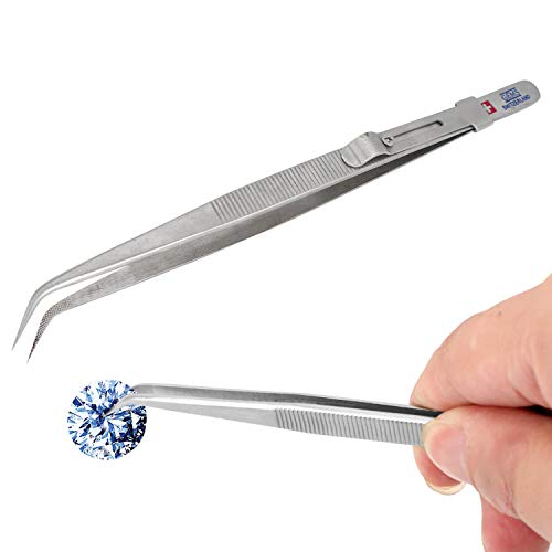 Pinzette a Punta Curva Diamantata Extra Lunga in Acciaio Inossidabile con Blocco a Scorrimento per Gemme di Pietra Strass Strumento di Raccolta Acrilico e Creazione di Gioielli