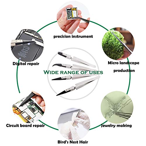 Punte intercambiabili: le pinzette in acciaio inossidabile con punte in plastica sono antistatiche. Manico in acciaio inossidabile sostituibile con punta in plastica è durevole per l'uso. Le pinzette non arrugginiscono, sono resistenti alla corrosione e non si ossidano. Le pinzette sono ispessite ed ergonomiche nel loro insieme.