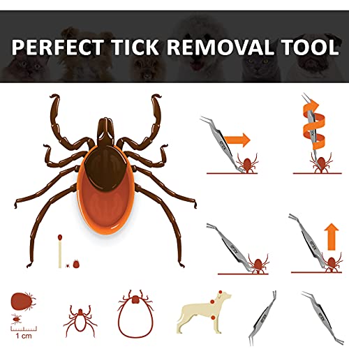 Strumento singolo con due estremità per rimuovere facilmente tutti i tipi di zecche da esseri umani, gatti, cani e tutti gli animali domestici. Pinzetta super appuntita per raccogliere ninfe o piccole zecche. Estremità della paletta appiattita per sollevare in sicurezza le zecche adulte