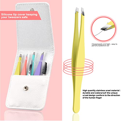 Facile da trasportare: il set di pinzette per sopracciglia è dotato di una custodia in pelle bianca, un regalo ideale per i tuoi amici. Tutte le pinzette di precisione per sopracciglia da 4 pezzi hanno una copertura della punta in silicone per proteggere la testa delle pinzette da danni e proteggere la mano da lesioni causate da pinzette affilate.
