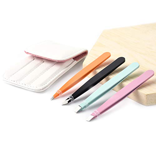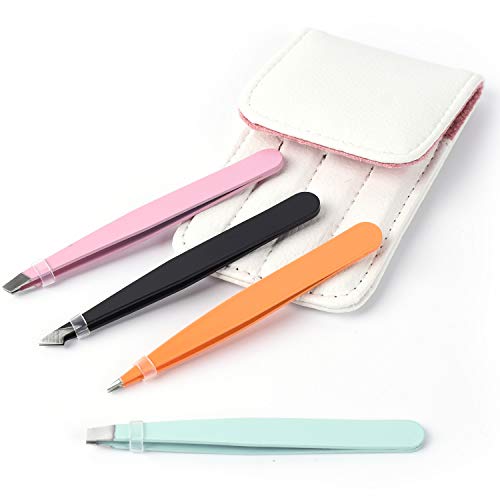 GXQS Pinzette per sopracciglia professionali Kit include 3 pezzi- a punta, Slant, Flat Tips e custodia in pelle nero