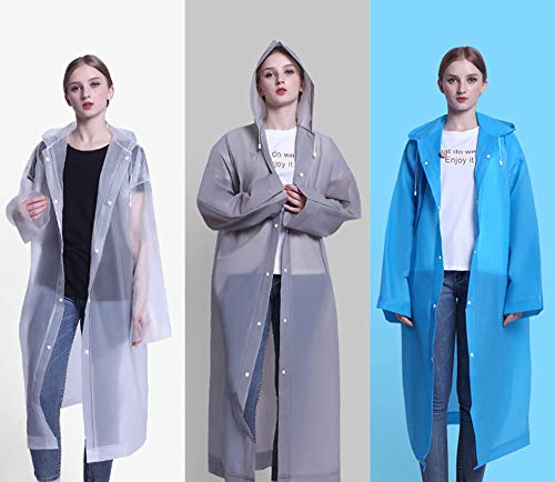 DXIA 3Pcs Pioggia Poncho Impermeabile, Eva Trasparenti Riutilizzabili Poncho Portatile Cappotto da Pioggia, Uomo e Donna, con Cappucci e Maniche, per Pesca, Trekking, Viaggi, Concerti (Grigio)