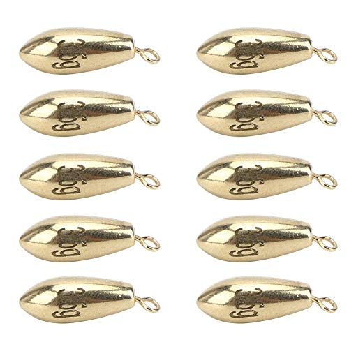 Piombini da pesca, 10 pezzi Pesi portatili in lega di rame riutilizzabili Pesi da pesca Rotazione Perline da pesca Affondatori di proiettili Attrezzatura da pesca Kit di accessori Dorato