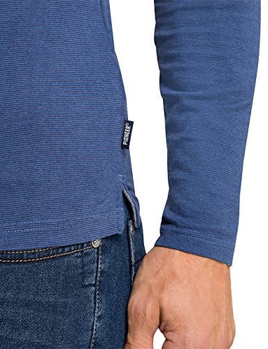 Pioneer Longsleeve Polo, Mid Blue Washed 6863, L Uomo
