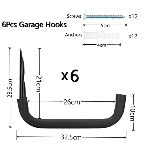 Contenuto della confezione: 6 ganci per scala a parete per confezione, 12 viti e 12 ganci in plastica sono dotati di questi ganci per bici che supportano una facile installazione per la parete del garage, le dimensioni del gancio per garage sono 23,5 cm x 32,5 cm (altezza x larghezza), ampio interno: 26 cm.