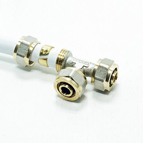 Pipetec, raccordo a T, 20 x 2 mm, per tubo composito multistrato DVGW, conforme a UBA, fino a max. 100 °C