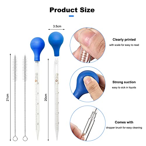 La confezione include: 2 pipette di misurazione in vetro da 10 ml + 2 grandi tappi in gomma + 2 spazzole per la pulizia in nylon, pipette in vetro con contagocce di misurazione possono essere utilizzate per misurare e trasferire il liquido, dispenser liquido che soddisfano le vostre diverse esigenze contemporaneamente, nonché contagocce e spazzole per la pulizia vengono utilizzati insieme per una maggiore tranquillità