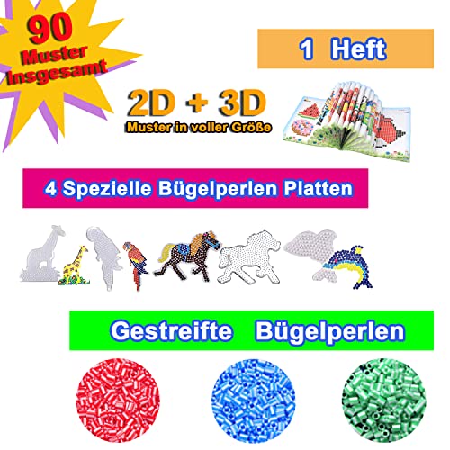 Set di perle: il set per bricolage contiene 4200 perline di sicurezza da 5 mm, 2 piastre (quadrate, 14,5 x 14,5 cm), 4 piastre con foglie di piccoli motivi, 2 pinzette, 5 piastre da stiro, 1 libro di perline (1:1), 3 portachiavi, 3 chiavi e 3 chiavi a incandescenza. 3 cordini portachiavi. 10 anelli di ferro.