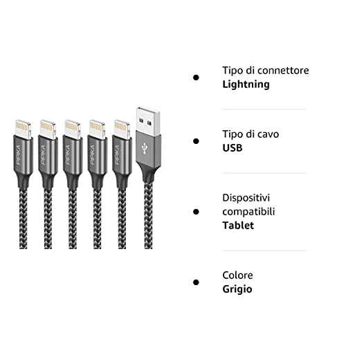 PIPIKA Cavo iPhone, [5Pezzi 0.25M 0.5M 1M 2M 3M] Caricabatterie iPhone Cavo Lightning in Nylon a Ricarica Rapida per Apple iPhone 13/13 Pro Max/12/12 Mini/11 Pro/XS/XR/X/8 Plus/7/6s/6 Plus/5c/SE/Air