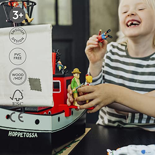 DOLLHOUSE GIOCA SUI SETTE MARI Ohoy! È ora di uscire sui sette mari con la nave pirata di Pippi, Hoppetossa! Porta Pippi Longstocking e i suoi amici e molte avventure ti aspetteranno! Il playworld è costruito con materiale in legno e ha molte caratteristiche;