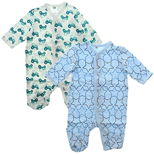 Pigiama a maniche lunghe per neonati, con piedi e stampa, in confezione da 2, con motivo trattore e stelle, morbido e accogliente per sogni dolci