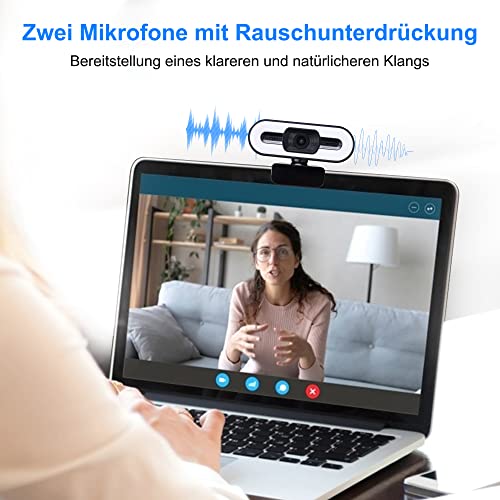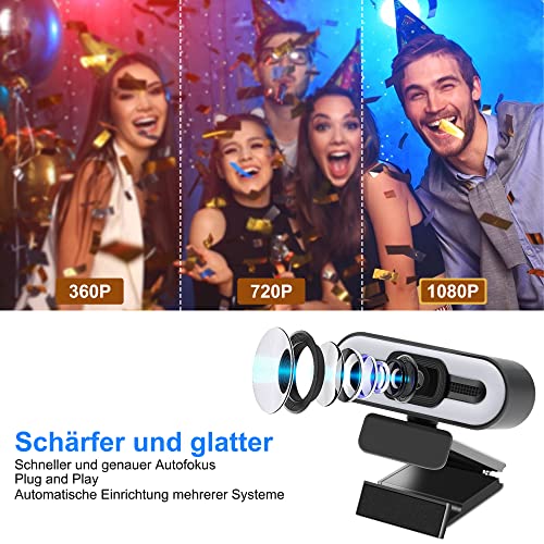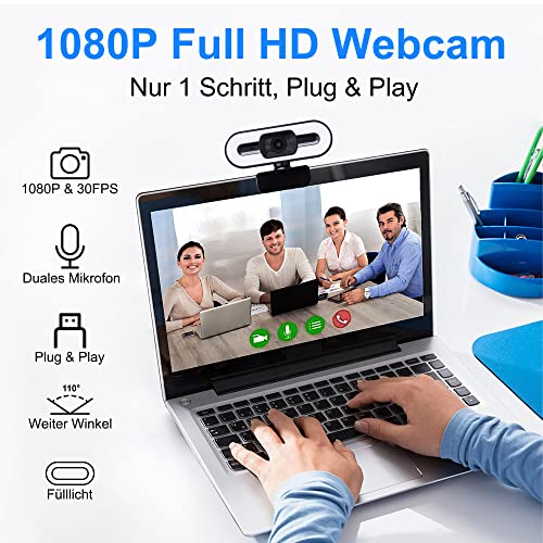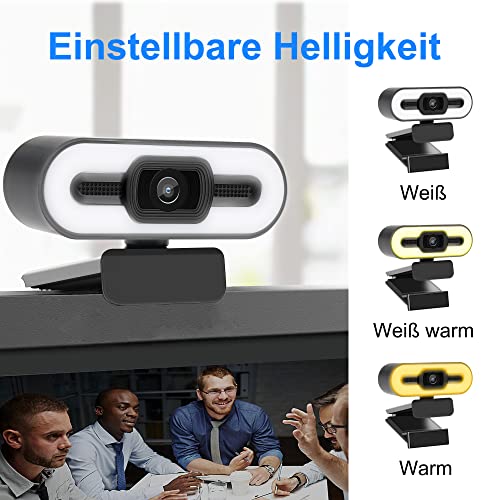 PIPRE Webcam 1080P Full HD, luce di riempimento regolabile integrata e microfono a cancellazione del rumore Q2, webcam 1080P per PC, desktop, laptop