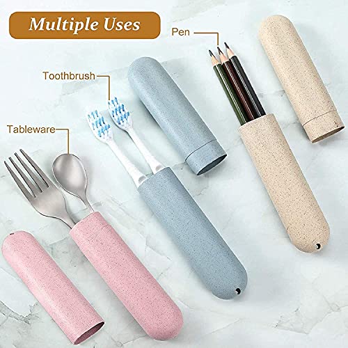 PIQIUQIU Astuccio per spazzolini da denti, 4 pezzi, ecologico, in paglia di grano portatile, per casa, escursioni, campeggio, viaggi, colore casuale