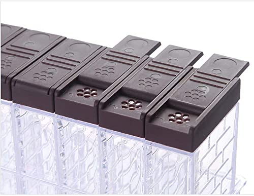 Dimensioni: tutto misura 16,5 x 6,5 x 10,5 cm. Ogni sezione misura 5,5 x 2,5 x 10,5 cm, 6 pezzi, abbastanza grande per conservare le spezie.