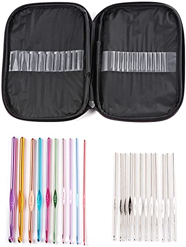 PIQIUQIU 22x Aghi per Uncinetto Set di Aghi Multicolori in Alluminio con Custodia Ferri da Maglia Uncinetti Ferri da Maglia all'Uncinetto
