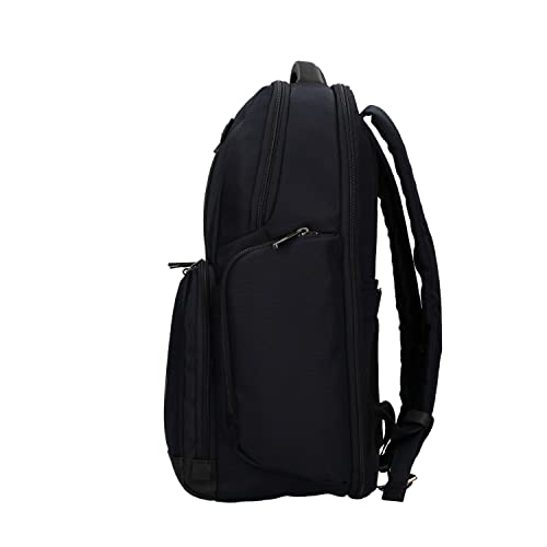 PIQUADRO Zaino grande in pelle e tessuto blu