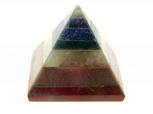 Piramide in pietre per chackra, 7 pietre per chakra: diaspro rosso, avventurina, quarzo dorato, ametista. Dimensioni: 30 - 40 mm