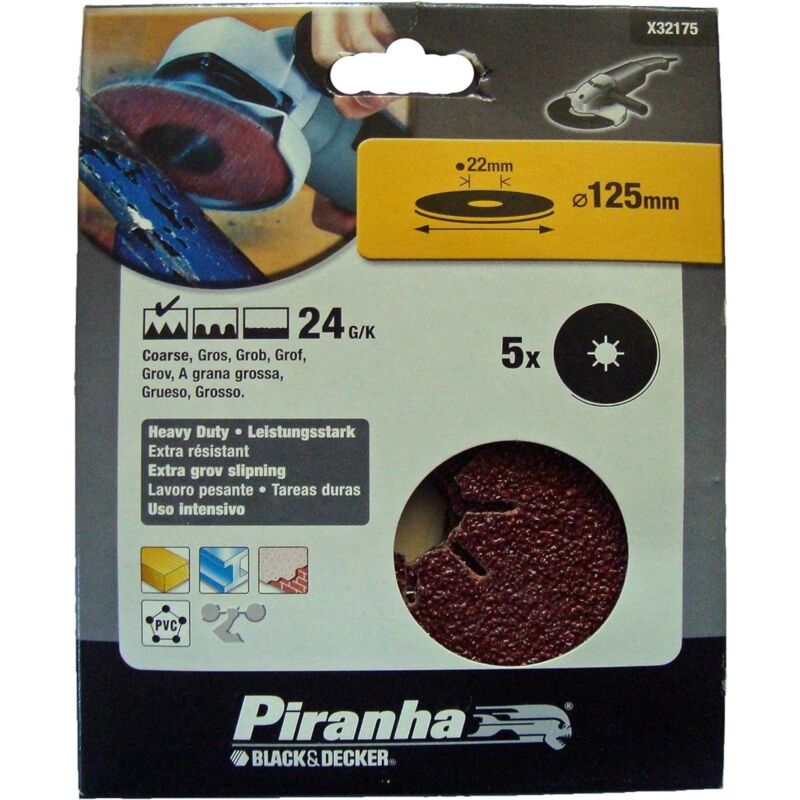 PIRANHA - DISCHI PER LEVIGATRICI GRANA 24 5PZ 5 fogli di carta vetrata granulata Utilizzare con legno / metalli / render / gesso / PVC Progettato per l'uso con smerigliatrici angolari 125 mm Foro al centro 22 mm