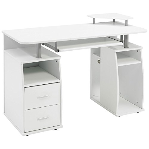 Piranha Furniture - Scrivania per Computer con Ripiani, mobiletto e cassetti, per casa e Ufficio, Effetto venature Legno, Colore Bianco Modello Tetra PC 5s