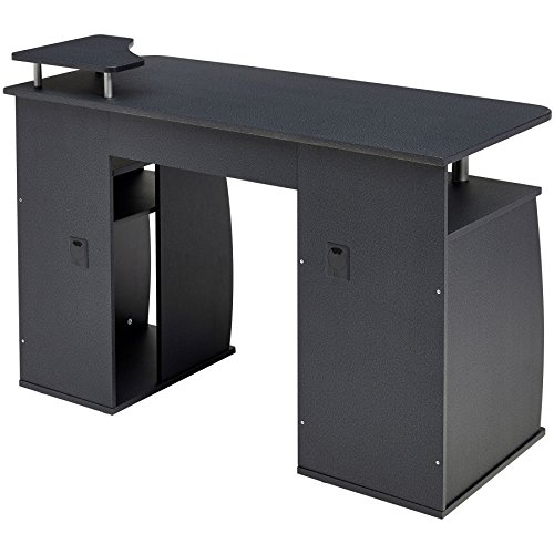 PIRANHA TRADING PC5g Scrivania per computer grande nera con due cassetti e quattro ripiani.