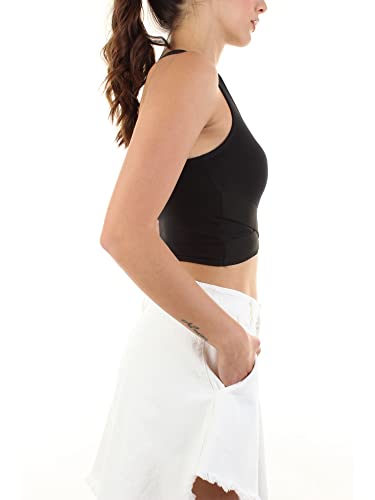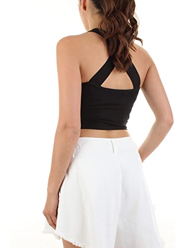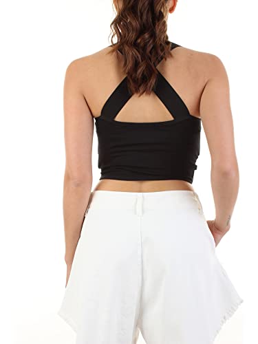 Top Pirex Donna Nero con Incrocio e Stampa con Logo S