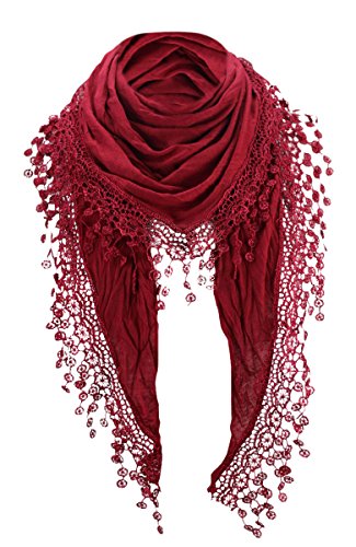 PiriModa Foulard triangolare da donna - con merletto - bordeaux - lunghezza 160 cm, larghezza 45 cm