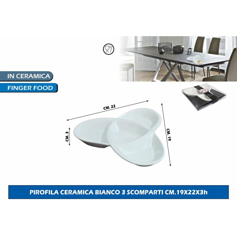 PIROFILA CERAMICA BIANCO 3 SCOMPARTI CM.19X22X3h