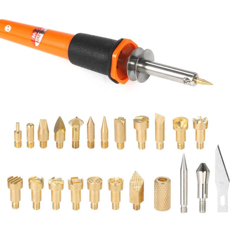 Guida al servizio post-vendita: https://drive.google.com/file/d/1mtcm-6CrR-epEE854vyde1MOIjuBGYCO/view?usp=sharing Vuoi un bosco efficiente ferro per intaglio del legno o la combustione a legna? Questo mini kit di legna elettrico è esattamente quello che stai cercando. Esso comprende una penna brucia 30W legno elettrico, 1 portapenne, 1 legno punta brucia, 9 assortiti punte legno intaglio, bruciore e 10 legno assortiti punte di saldatura, 1 mandrino lama calda, che fanno lavori di saldatura legno, lavorazione del legno, hobby, lavorazione, Migliorie di casa più conveniente. Caratteristiche: legno Utili strumenti di masterizzazione, molto facile da usare. 30W Tipo riscaldamento esterno saldatura elettrica ferro può soddisfare le diverse esigenze di saldatura. Grande per i lavori di saldatura del legno subordinate all'accertamento di saldatura, la lavorazione del legno, hobby, il lavoro di metallo, hobby, artigianali, di miglioramento casa. Adatto a legna, pirografia, incisione