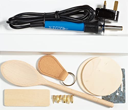 Il kit include pirografia iorn 4 punte a doppia punta, selezione di spazi vuoti in legno, portachiavi in pelle, istruzioni (lingua italiana non garantita)