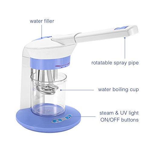 ✔ Piroscafo e umidificatore: il piroscafo Pure Nano per la cura quotidiana è un nuovo generatore di vapore che genera vapore nanoionico. Nano Steamer combinando un elemento riscaldante convenzionale con un nuovo evaporatore ad ultrasuoni per produrre particelle ioniche caricate negativamente. Il vapore nano combinato con particelle di acqua ionica è fino a 10 volte più efficace nel penetrare la pelle.