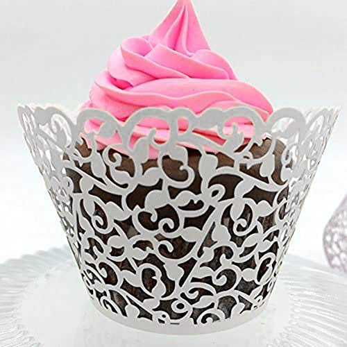 100 pirottini per cupcake, pirottini per cupcake artistici, in filigrana di pizzo, tagliati al laser, per matrimoni, feste di compleanno, bianco, 21.0x8.0x2.0cm